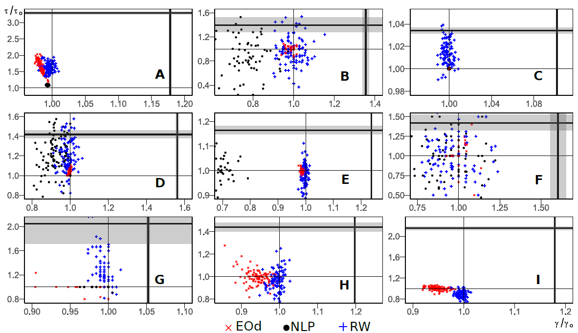 )Plots of fairness ratios (vertical axes) against accuracy ratios(horizontal axes) using random forest classifiers, showing the failure in OOD generalization of fairness algorithms